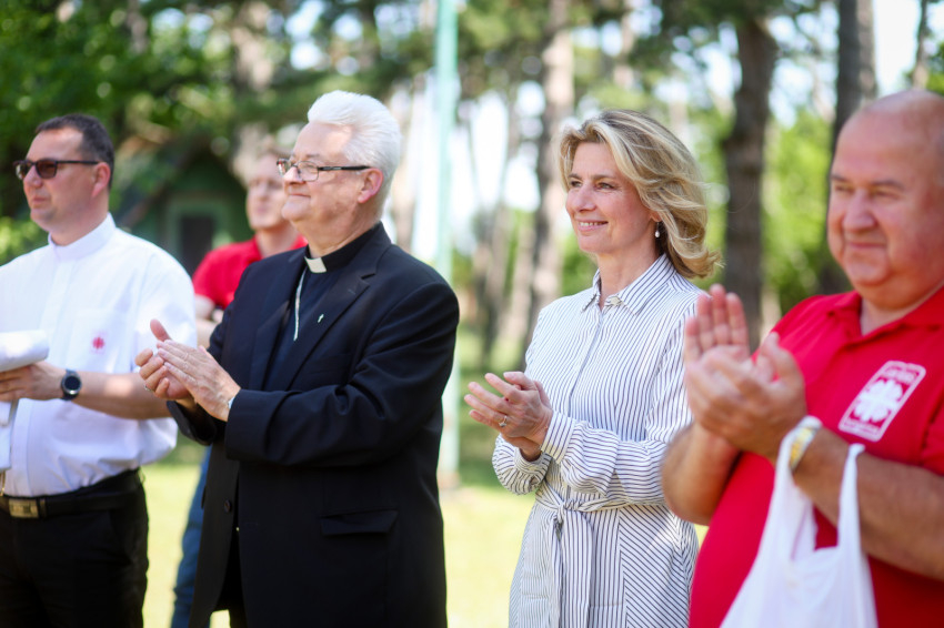 Spányi Antal püspök a karitászigazgató szavaihoz kapcsolódva elmondta: „Aki a lelkében megkapta a hit kegyelmét, tud vallásos módon gondolkodni és élni, tudja, hogy Jézus parancsa: szeressük egymást. Szeretni pedig úgy tudunk igazán, hogyha egymásnak jót teszünk, egymásnak tudunk örömet szerezni, egymás életét próbáljuk segíteni. Ez a tábor azért jött létre, hogy sok örömet szerezzünk egymásnak, sok segítséget próbáljunk adni a családoknak; hogy a nyár pihenéssel, gazdagodással és lelketek gyarapodásával jól teljen el. Ehhez kell jószándék, de kell a Jóisten áldása is.”