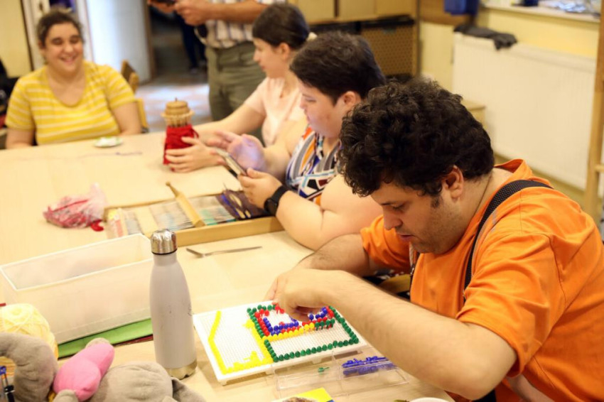 A foglalkozás elején mindig választanak egy segítőt is, akinek az a feladata, hogy a szövéshez szükséges eszközöket mindenkinek biztosítsa: adjon új fonalat, ha elfogyott, dobja ki a szemetet, vegye föl, ha valami leesett a földre, juttassa el a leverővillát vagy a nagyollót annak, aki kéri (persze csakis hegyével lefelé fordítva). „Segítő bárkiből lehet, és segítőnek lenni kitüntetés, örömforrás, mert ebben a szerepben a fiatalok azt élhetik meg, hogy ők adnak, hogy hasznossá lehetnek a többiek számára. Mindenkinek meg kell tapasztalnia, hogy ő nem csak segítségre szoruló valaki” – mondja Győri Ildikó, aki a fiatalok fejlődését sem elsősorban textilművészeti szempontból értékeli: „Folyamatosan tanulunk, a fiatalok tehetsége szerint hosszú távon el lehet jutni akár a szövésmintákig is, de itt nem az a cél, hogy mindenki mindent tudjon, hanem az, hogy jól érezzék magukat, hogy a szövés eszköz legyen ahhoz, hogy az életük rendben legyen. A mottónk is erről szól: szépen, lassan, élvezettel kell dolgozni. Ha hajtjuk egymást, vagy mindenkitől olyat várunk el, amire még nem képes, akkor elvész a lényeg.”