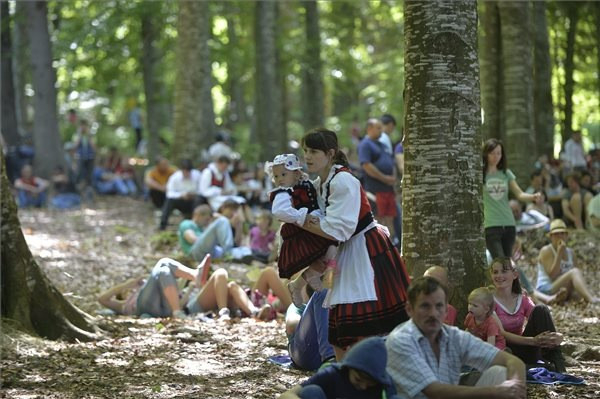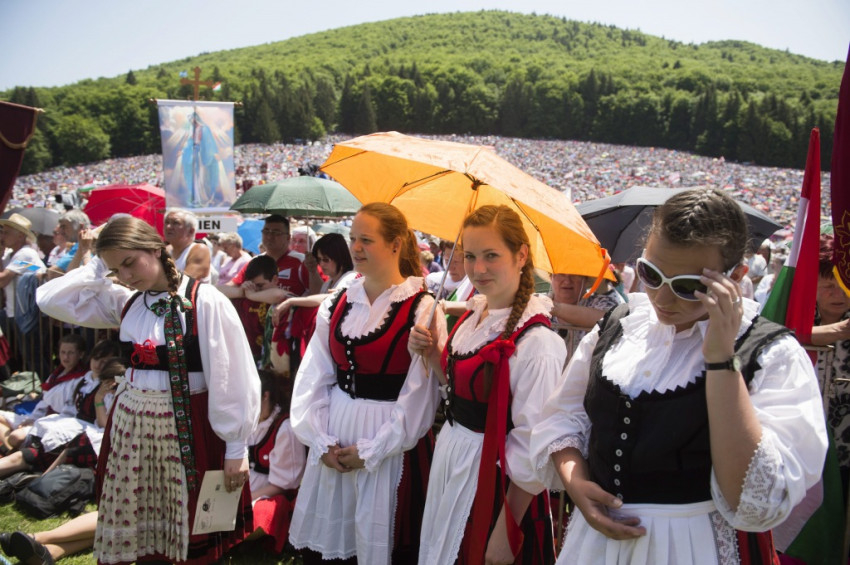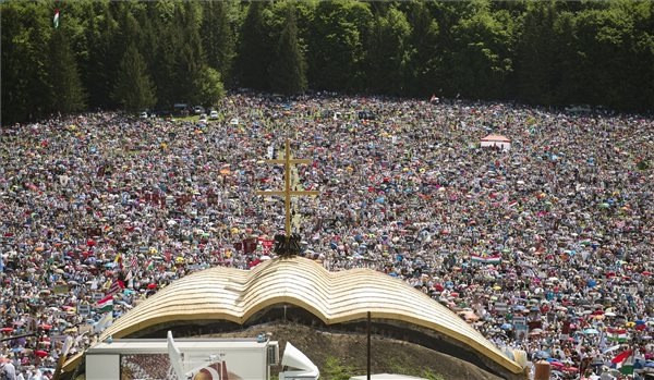 A hagyományosan pünkösdvasárnap előtti szombaton tartott zarándoklatra idén is százezrek érkeztek szerte a világból a csíksomlyói hegynyeregbe.