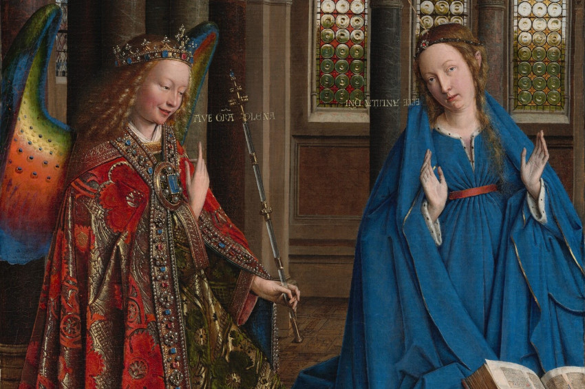 Az Angyali üdvözlet című olajfestmény 1434–36 körül készült, Jan van Eyck holland festő zsenialitását és precizitását tükrözi. Azt a bibliai eseményt jeleníti meg, amikor Gábriel angyal megjelent Máriának, tudtul adva neki, hogy ő fogja világra szülni a Megváltót (Lk 1,26–38).