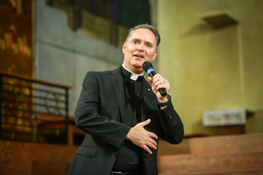 James Mallon atya közvetlen fellépésével rögtön megnyerte a hallgatóság szimpátiáját. Azzal kezdte, hogy lefotózta a megjelenteket, majd elmesélte, hogy Skóciában született, szüleivel később Kanadába költöztek. Mivel családfakutató, kinyomozta, hogy az egyik távoli őse Skóciai Szent Margit, akinek az édesanyja, Árpád-házi Ágota államalapító királyunk, Szent István király lánya vagy nővére volt. Így magyar ősökkel is dicsekedhetem – mondta a kanadai pap. Arra is kitért, hogy a papi szemináriumban Miklósházi Attila SJ, az emigrációban élő magyar katolikusok egykori püspöke volt a lelkivezetője, akire egészen kiváló emberként emlékszik vissza.