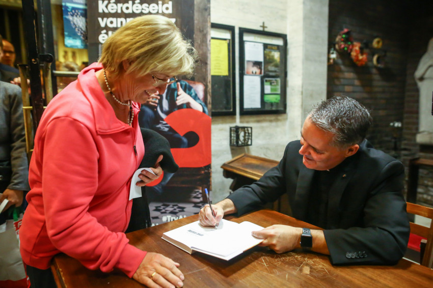 Mallon atya előadását szentségimádás követte. Ezután a szerző dedikálta művét: több száz könyvet írt alá.