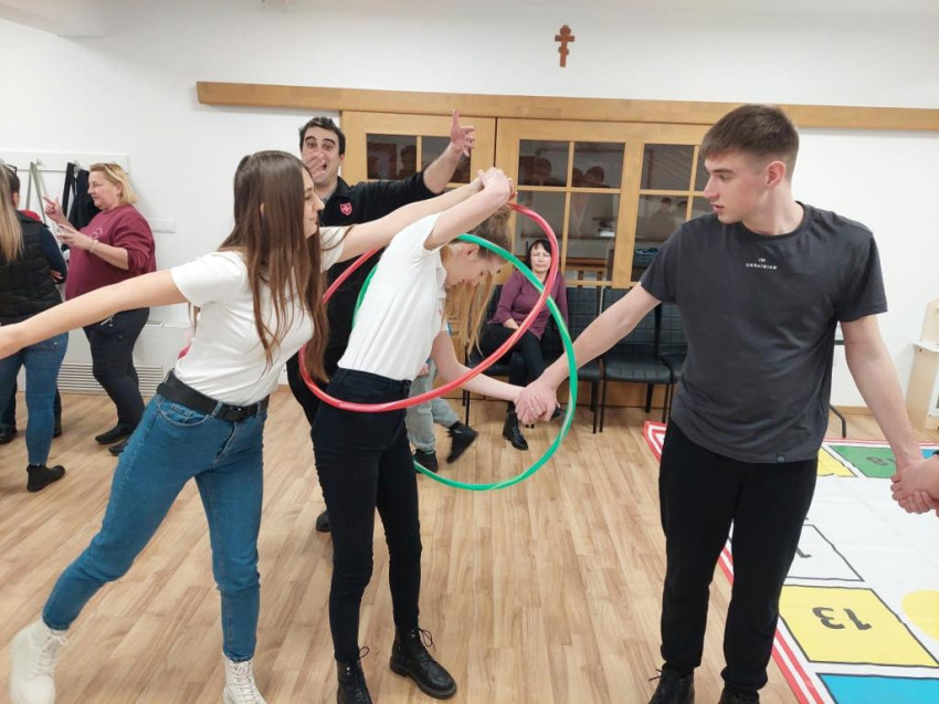 A görögkatolikus templom közösségi házában a csoportos játékok lebonyolításában jártas önkéntesek a „mozgó játszótér” módszerével egyszerre tudtak örömet szerezni a gyerekeknek, ugyanakkor felmérni, milyen képességeik, érdeklődési köreik, erősségeik vannak, így a következő játékot már a gyerekek igényeinek és képességeinek megfelelően tudták megszervezni. Ökrös Benjámin, az ifjúsági önkéntes csoport tagja elmondta, felfedeztek kisebb kulturális különbségeket, de ezek csak még izgalmasabbá tették a játékokat. „Érdekes volt látni, hogy mennyivel másképp játszanak egy olyan közismert játékot, mint a kő-papír-olló. Mi is tanultunk a gyerekektől. Sokat társasoztunk és twistereztünk. A 10 és 18 év közötti fiatalokat csoportokra osztottuk, és az életkoruknak megfelelő játékokat tartottunk nekik. Próbáltunk az egyszerűségre törekedni, mivel hiába volt tolmácsunk, azt gondoltuk, az lesz a legélvezhetőbb és legjobb, ha maximalizáljuk azt az időt, amit a játékra tudunk fordítani, és minél kevesebbet beszélünk egy adott játékról. Nagyon gyorsan elrepült az idő, és mindig azon kaptuk magunkat, hogy még folytatnánk. Az események végén volt lehetőségünk kicsit beszélgetni akár tolmács segítségével, vagy egy magyarul is beszélő kísérő pedagógussal, ami mindig nagyon jó lezárást adott a napnak.”