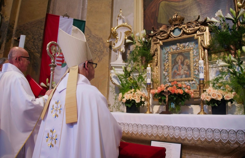 A főpásztor Nagyboldogasszony ünnepéről mint a legnagyobb Mária-ünnepről beszélt, amely a világon mindenhol, az első időktől kezdve a keresztény emberek tudatába ivódott. Máriára úgy tekintettek, mint arra az asszonyra, aki nemcsak világra szülte, felnevelte és segítette az Isten Fiát földi életében, hanem életének végén a Mennybe vétetett, hogy ha együtt volt Fiával a földön, legyen együtt vele az Égben is. „Ezt ismerte fel Szent István király is, és látva a nemzet sorskérdéseit, a veszélyeket, amelyeket már nem tudott megoldani; és látva környezete hitetlenségét, az országot és koronáját erős hittel és bizalommal Máriának ajánlotta.