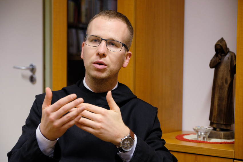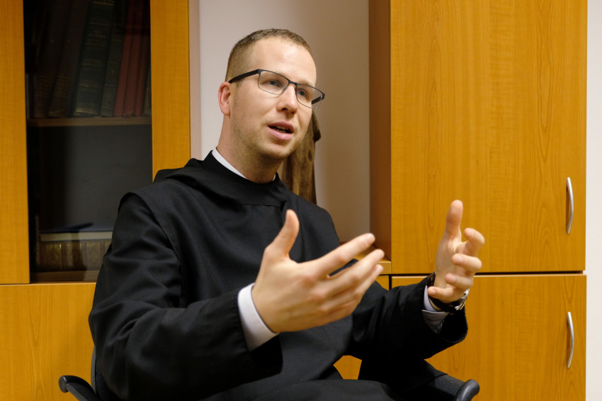 – Életünk keretei adottak, ehhez minden szerzetes testvérnek alkalmazkodnia kell. A ritmust a zsolozsma adja meg, ehhez illeszkedik a közös étkezés. Reggel fél hétkor mondjuk el az első imaórát, ez a vigília és a laudes összekapcsolásából áll. Ezt követi a közös reggeli, amely után mindenki elindul a saját feladatainak ellátására. Negyed egykor mondjuk el a napközi imaórát, ezt követi a közös ebéd, melyet együtt kezdünk és együtt is fejezünk be. Az esti vesperást télen a szentmise után, nyáron pedig előtte mondjuk el. A mise természetesen konventmise, melyet az apátsági templomban szoktunk megtartani. Nagyböjtben és adventben közösen énekeljük a kompletóriumot is.