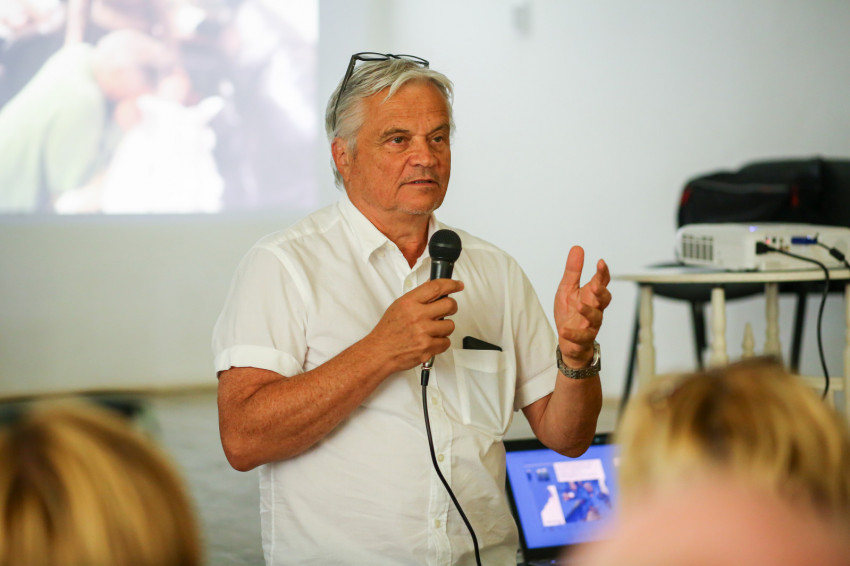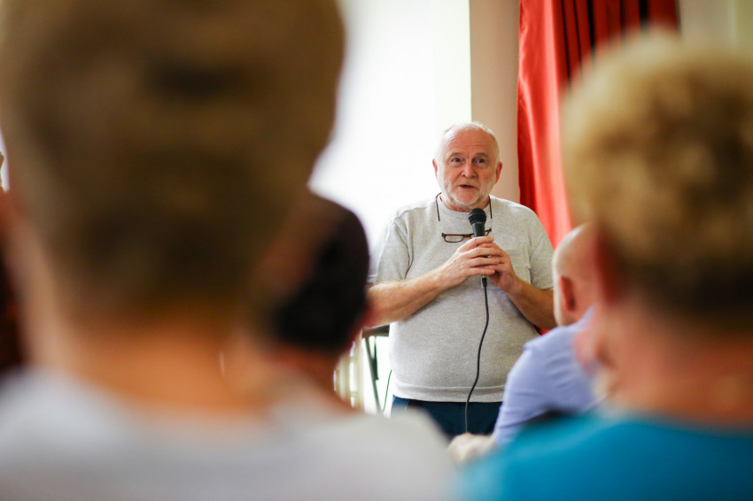 A fogantatástól a foglalkoztatásig arlói program koordinátora Velkey Balázs, a miskolci Fényi Gyula jezsuita gimnázium igazgatóhelyettese. Ő arról szólt az eseményen, hogy a kultúrprogramokon kívül a Magyar Máltai Szeretetszolgálat két teljes állású szociális munkással lesz jelen a településen, az egyikük Baji József (nyitóképünkön), aki a faluba járt iskolába – ő a családjával együtt részt is vett a filmklubon. A másik státuszon a jezsuita iskola egyik volt, immár harmincon felüli diákja, Robi és barátnője, Bea osztoznak fél-félállásban. Kis Ferenc, az eddig a Jezsuita Menekültszolgálatban tevékenykedő rendtag is heti két napra a településre költözik, miközben szeptembertől mentorképzésben vesz részt.