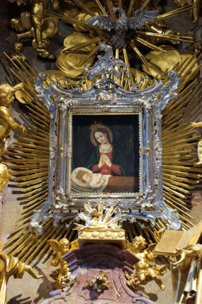 A szentmise végén a koncelebráló papok és a hívek Veres András püspök vezetésével a Könnyező Szűzanya kegyoltára előtt imádkoztak.
