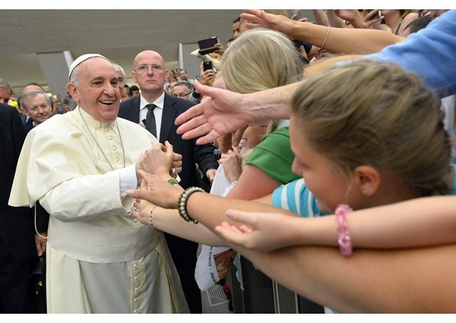 A Szentatyával való találkozót délután 6 órakor tartották a Szent Márta-házban. A huszonöt fős csoport Jean-Louis Tauran bíboros vezetésével érkezett a pápai fogadásra.