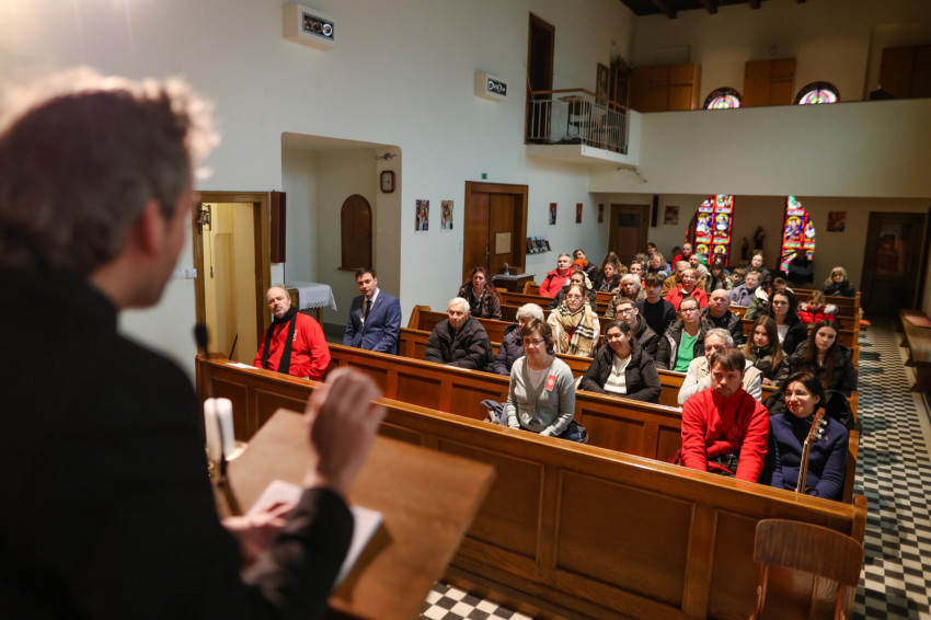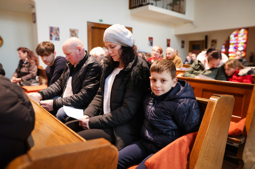 A kápolnában Szabó Csaba karitászmunkatárs vezette az éneket: „Ne félj, mert megváltottalak, neveden szólítottalak…”