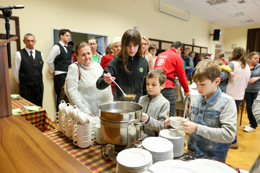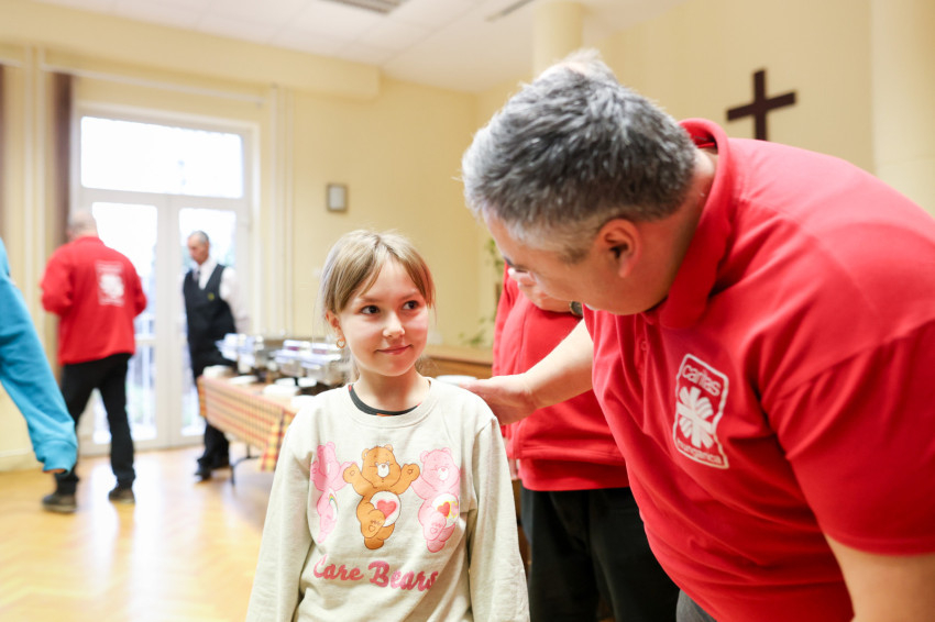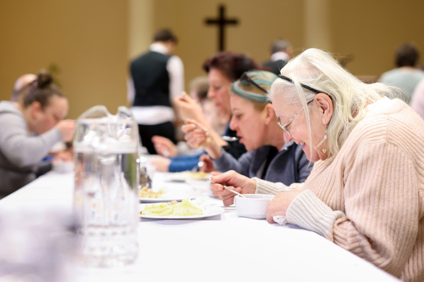 Az Esztergom-Budapesti Főegyházmegye karitászszervezetének tíz régiója van, benne 109 karitászcsoport, melyben a munkatársakon túl 1067 önkéntes tag segíti a rászorulók ellátását. Január 18-án szombaton hét régióból érkeztek vendégek a főegyházmegye ebédmeghívására, melyen a karitászközpont munkatársai is részt vettek. Negyven olyan általuk ismert és kísért személyt hívtak meg az ebédre – vagy ahogyan ők nevezik, szeretetvendégségre –, akik maguktól nem jelentkeztek volna.