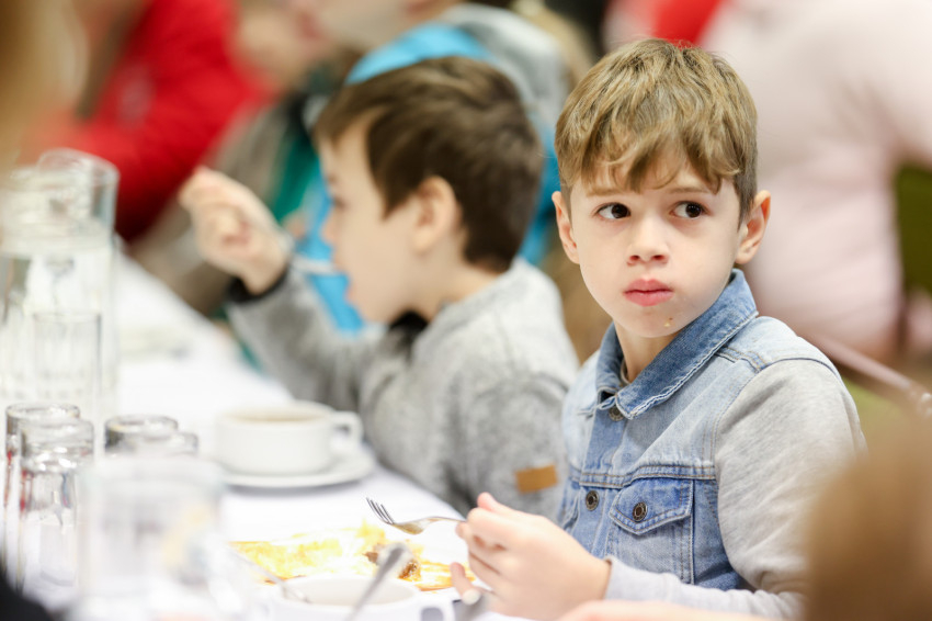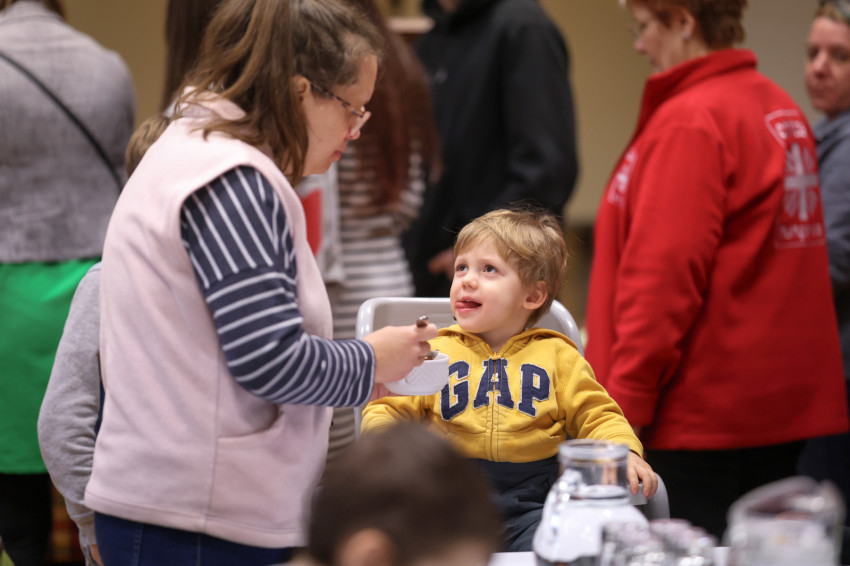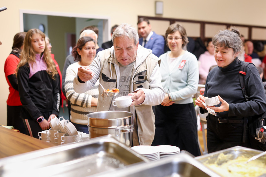 A karitászközpont munkatársai szóba elegyedtek a vendégekkel, akik szívesen osztották meg magukról életük körülményeit, legyenek kisgyerekek, kamaszok, felnőttek vagy idősebbek. Voltak olyan fiatalok, akik kilencgyerekes családból származnak, édesanyjuk neveli őket egy terézvárosi lakásban. Mások teljes családdal együtt érkeztek, a legkisebb etetőszékben fogyasztja az ebédet. A személyzet udvariasan szolgálta ki a gyerekeket is, és repetára való is maradt. Az asztal túlvégén asszonyok fogyasztottak jóízűen a marhahúsos és csirkehúsos fogásból. Egyesek megragadták az alkalmat, hogy Szili Andrással váltsanak néhány szót, akit többen személyesen is ismernek.