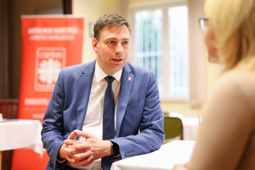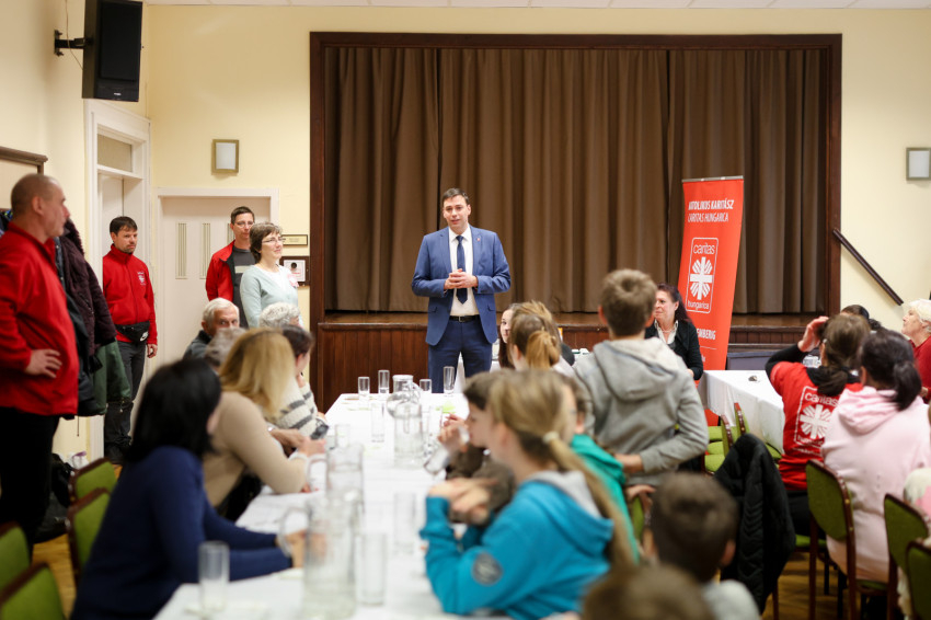 „Különleges ez a mai alkalom, hiszen ilyen körülmények között még nem találkoztunk” – kezdte beszédét Szili András, a Szent Erzsébet Karitász Központ lelki igazgatója. – A mai esemény nem templomi, liturgikus, hanem a személyes együttlétről fog szólni. De a találkozás Jézus nélkül nem jöhetett volna létre. A Karitász szervezete Jézushoz tartozik, róla próbálunk tanúságot tenni úgy, hogy amit befogadtunk az életünkbe, tovább is adjuk. Ezért a közös asztal – hangsúlyozta.