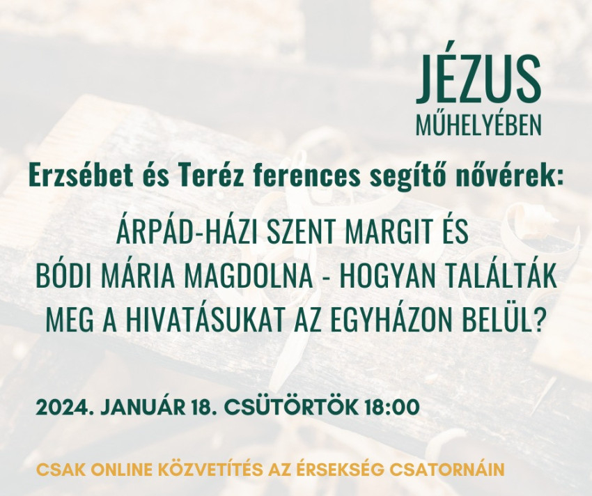 Az első alkalom élő online közvetítése január 18-án, csütörtökön 18 órától követhető a Veszprémi Érsekség Facebook-oldalán és YouTube-csatornáján, valamint a Jézus műhelyében Facebook-oldalán.
