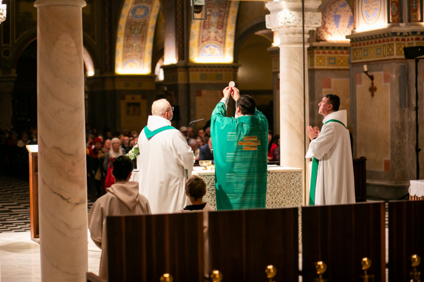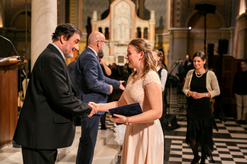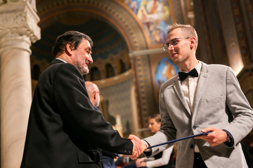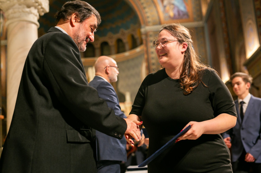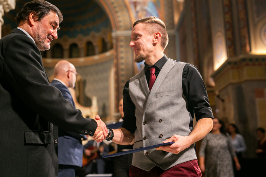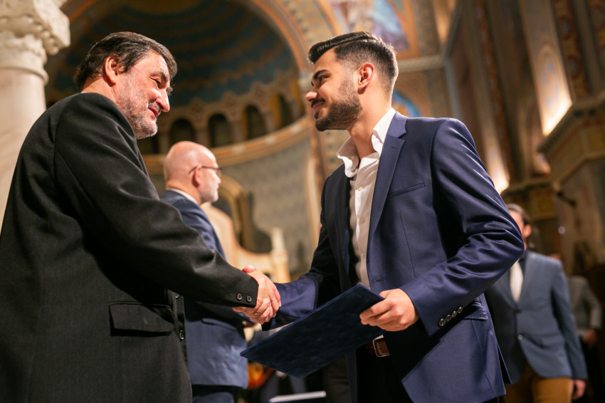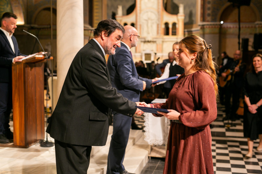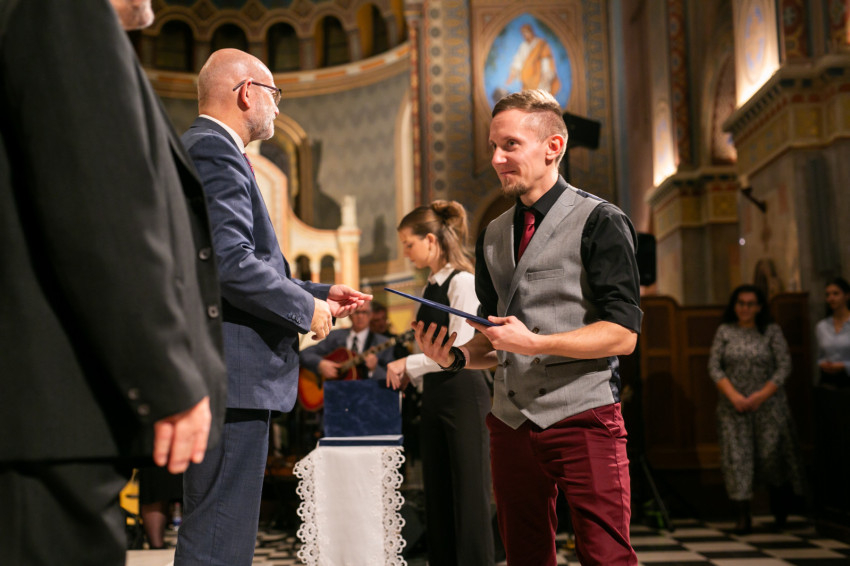 Az Apor Vilmos Katolikus Főiskola rektora, Gloviczki Zoltán és Kondé Lajos pasztorális helynök adták át a Sacro Song keresztény könnyűzenei workshop végzőseinek az oklevelet. Név szerint szólították a résztvevőket, a templomi közösség nagy tapssal köszöntötte őket.