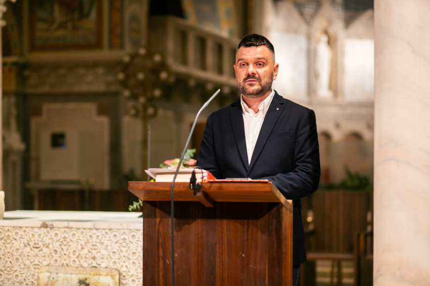 A szentmisét követően Gloviczki Zoltán, az Apor Vilmos Katolikus Főiskola rektora köszöntötte a végzetteket. Szophoklésztől idézett: „sok van, mi csodálatos, de az embernél nincs semmi csodálatosabb”. Rámutatott, hogy a görög eredeti, valamint annak latin fordítása egyszerre hordozza a csodálatos, fenséges, félelmetes, ijesztő, különleges jelentést. „Emberi szavainkkal szinte visszaadhatatlan a jelentéstartalma, erre igazán a zene képes.