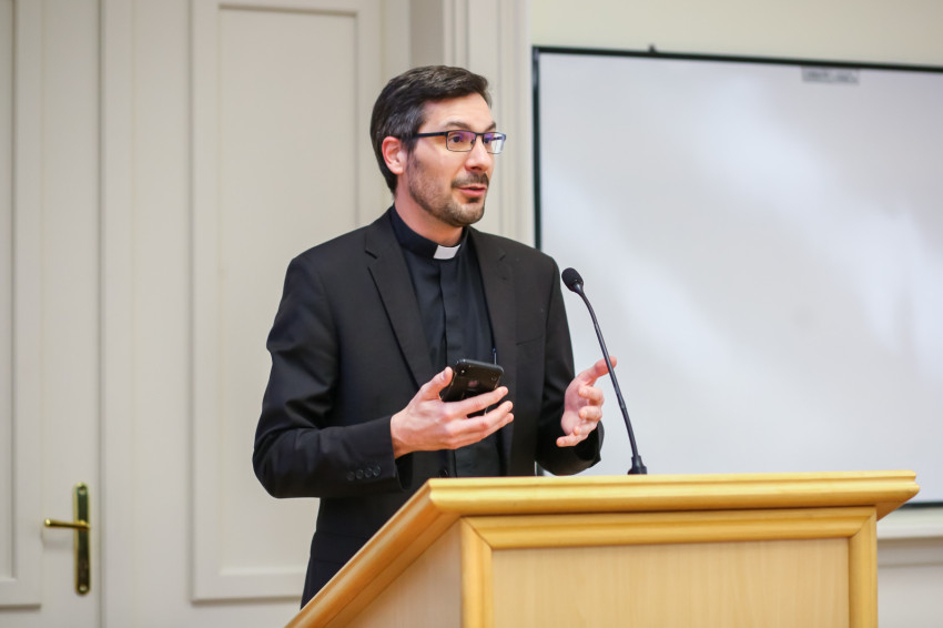 Kocsis professzor előadása két részből állt. Először azon formai sajátosságokról beszélt, amelyek Jézus tanítását jellemzik, a második részben pedig felvázolta tanításának módszereit, illetve lényegét, tartalmát.