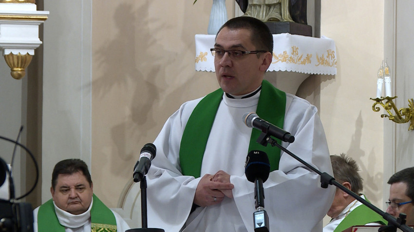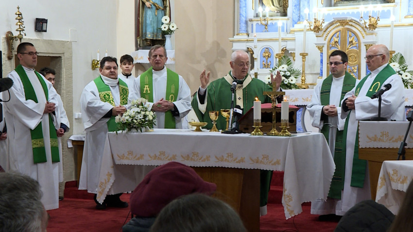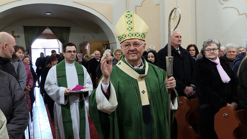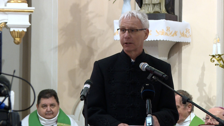 Szentbeszédében a főpásztor a német ősökről is megemlékezett, akik e szép templomot hagyták a közösségre, és elismerését fejezte ki, hogy a német önkormányzat ébren tartja ezt az identitást az itt élőkben a bennünket éltető hittel együtt. Az olvasmányokra utalva elmondta, Isten a hűséges és tiszta szívekben és tiszta templomokban akar élni. Nem elég azonban a szépség, nekünk is hivatásunk van, hogy tiszták és szentek legyünk; ezt magunktól nem tudjuk megtenni, erre az Isten hívott bennünket és segít ebben.