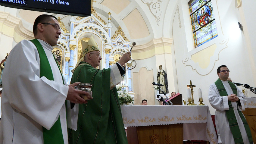 A szentmise végén Szabó Attila plébániai kormányzó hálát adott Istennek a nap kegyelmeiért, a közös ünneplésért, megköszönve Ternyák Csabának, hogy elfogadta a meghívást, és megáldotta a felújított templomot. Köszöntötte Soltész Miklós államtitkárt, Hörcsik Richárd országgyűlési képviselőt, Tirk Sándorné polgármester asszonyt, a megjelent helyi híveket, zarándokokat. Elmondta: két évvel ezelőtt, a külső felújítás utáni megáldáskor (2022. április 3-án) még csak álom volt a belső rekonstrukció. Legutóbb 1962-ben újították fel a templombelsőt, akkor kerültek a falakra a Petrasovszky Leó készítette olajszekkók, amelyek állapota az évtizedek folyamán igen leromlott. A restaurátori munkákat Köteles István végezte, akárcsak a díszítő festéseket.