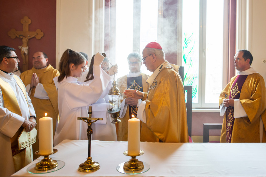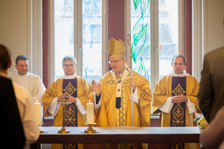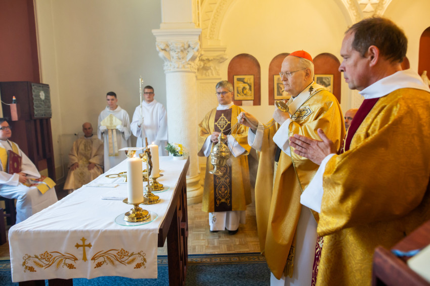 A kápolna az Istennel való találkozás helye, halljuk gyakorta – kezdte beszédét Erdő Péter. – De hol lakik Isten? A bíboros beszédében arról tanított, mi a viszony a kereszténység és az épített templom között, hogyan lehet jelen az anyagban a szellem, az az Isten, aki túl van a téren és időn, és – ahogy Szent Pál írja – mindenek felett áll, és mindent átjár, mindenben benne van. Miért kell akkor külön templom? – tette fel mindannyiunk logikus kérdését a bíboros.