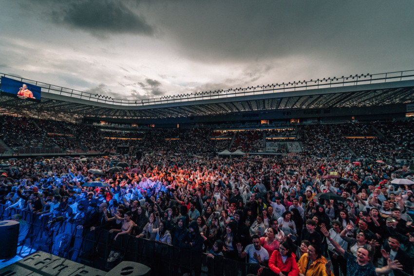 Ha tavaly a hőség, akkor idén a lehetséges zivatarok miatt lehetett aggódni, főleg, hogy előző este befolyt a víz a stadionba. Ám ahogyan tavaly a Puskásban is pár óra alatt 43-ról végül 25 fokra csökkent a koncertre a hőmérsékletre, itt is kegyesek voltak az égiek, mert csak enyhe eső érkezett, amit egy hatalmas szivárvány követett.