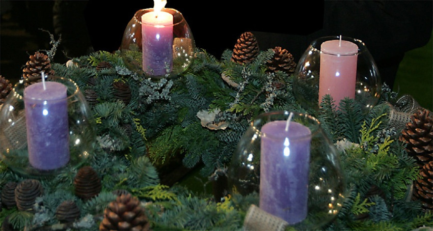A hagyományos adventi koszorú, - melyet három lila és egy rózsaszín gyertya díszít -, a közös karácsonyvárást segíti, melyet nemcsak a templomban, hanem a családokban és más közösségekben is elkészítenek. A gyertyák színe szimbolikus jelentőséggel bír: a lila a bűnbánatra, a rózsaszín az örömre utal.