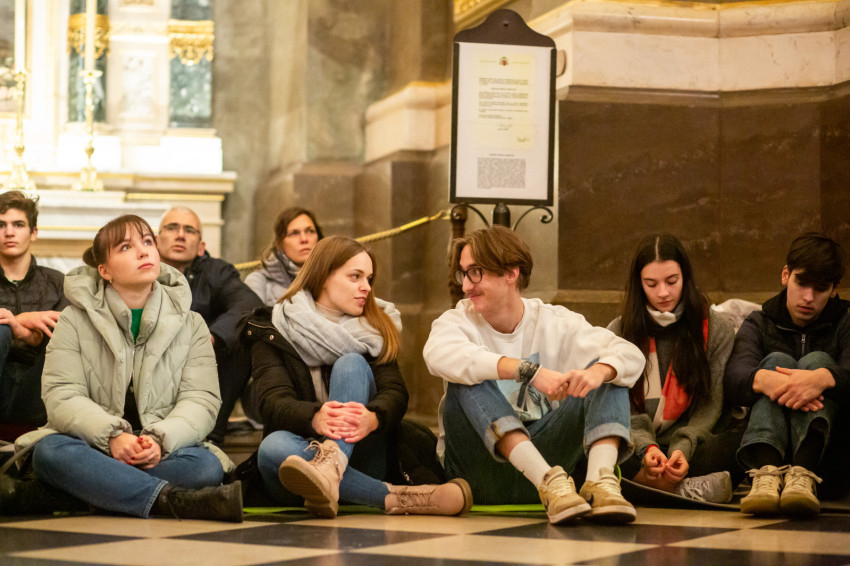 Csépányi Gábor a továbbiakban egy közös meditációra hívta a jelenlévőket. „Próbáljuk ki, mit jelent az Úr közelségében lenni, arra az evangéliumi jelenetre figyelve, amikor Gábriel angyal megjelenik Máriának. Kérdezzük meg magunktól: a jelenetben ki vagyok én? Az örömhírt hozó (angyal), vagy Mária, akinek az égi küldött azt mondja »Ne félj, örülj!«?