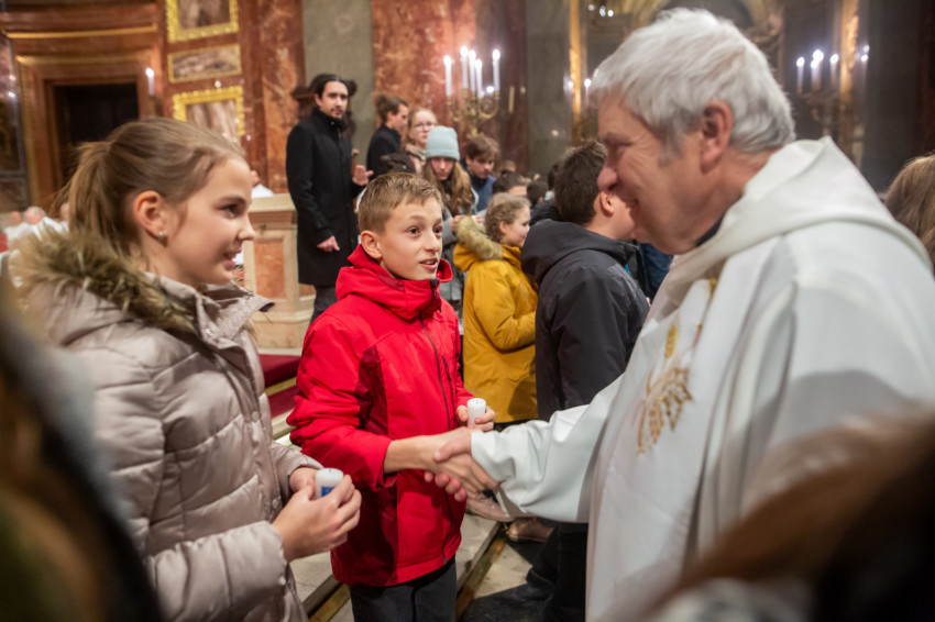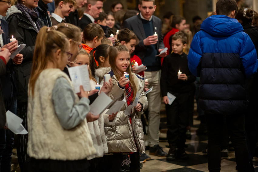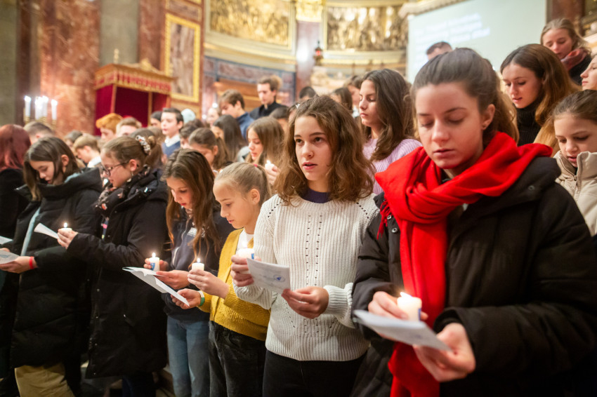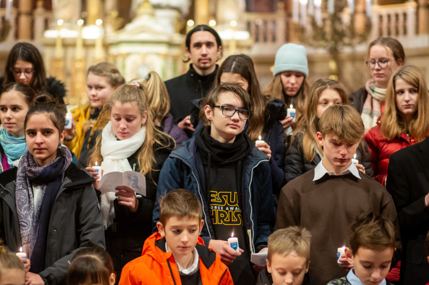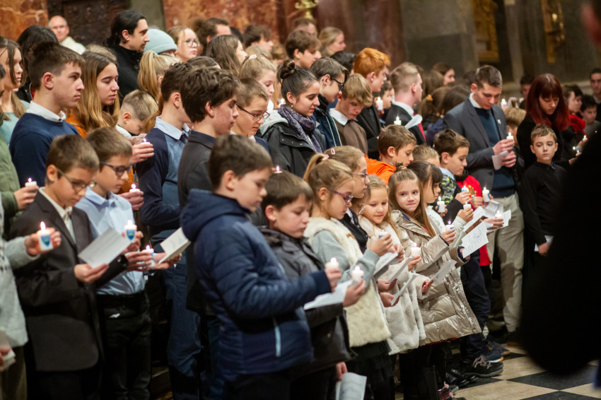 A beszéd után következett a Regnumban elköteleződő fiatalok hagyományos fogadalomtétele. Több mint százhúszan gyülekeztek az oltárlépcsőnél, égő gyertyával a kezükben.