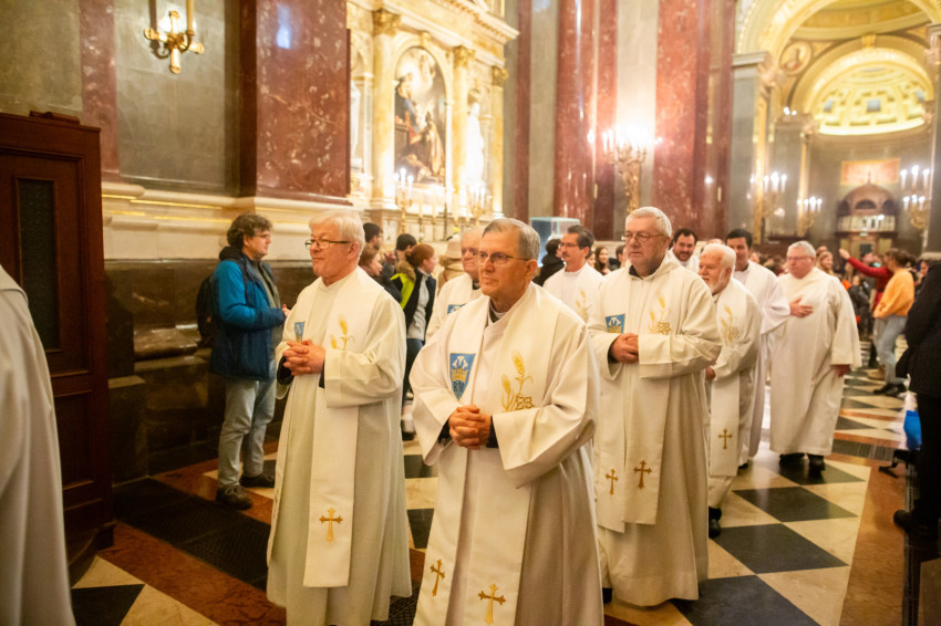 A szertartás elején, a bevonuláskor a gitáros zenekar előadásában felhangzott a Jöjj el hát, gyermekarcú Isten című dal, a regnumi atyák pedig az oltár köré gyűltek.
