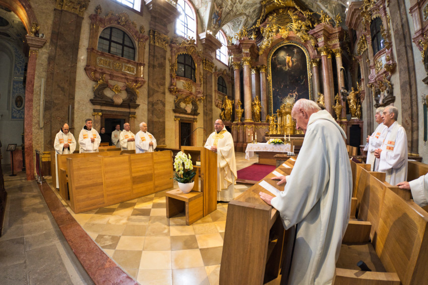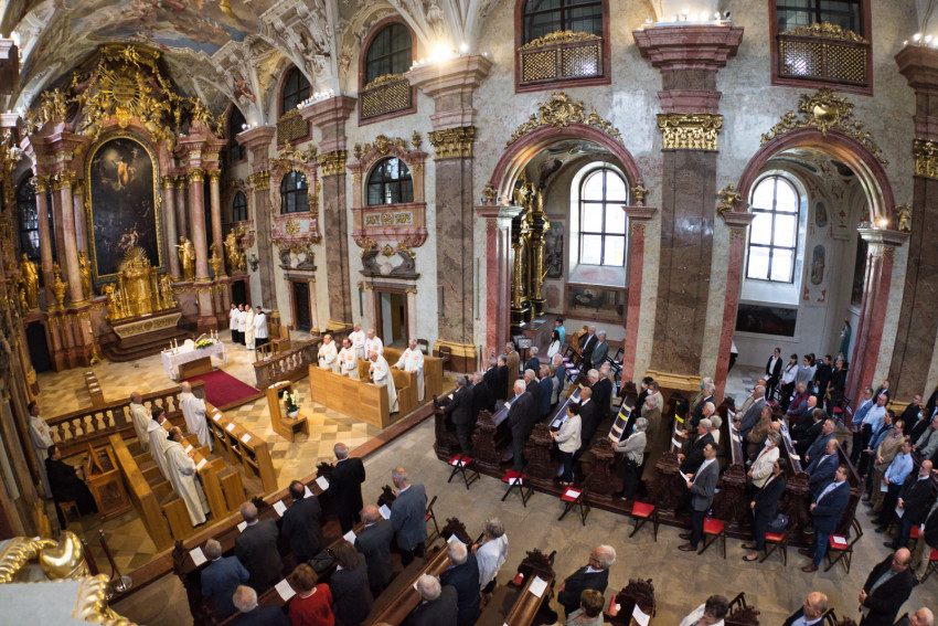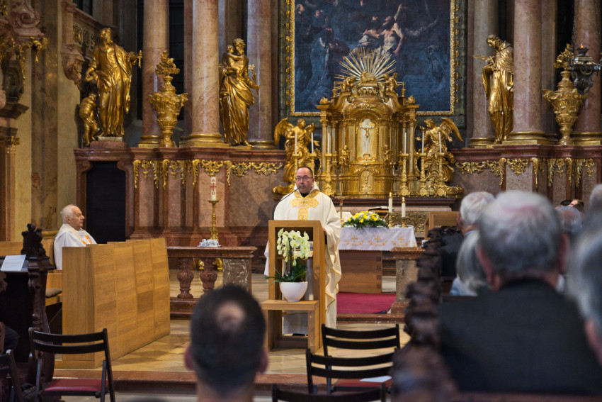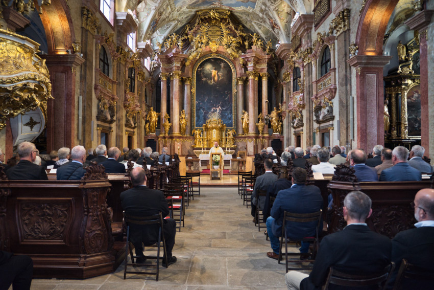 Az ünnepség szentmisével kezdődött, amelyet Sárai-Szabó Kelemen OSB perjel, a győri bencés közösség tagjai és az öregdiák papok celebráltak. A felajánláskor az osztályok gyertyát gyújtottak elhunyt diáktársaikra és tanáraikra emlékezve.