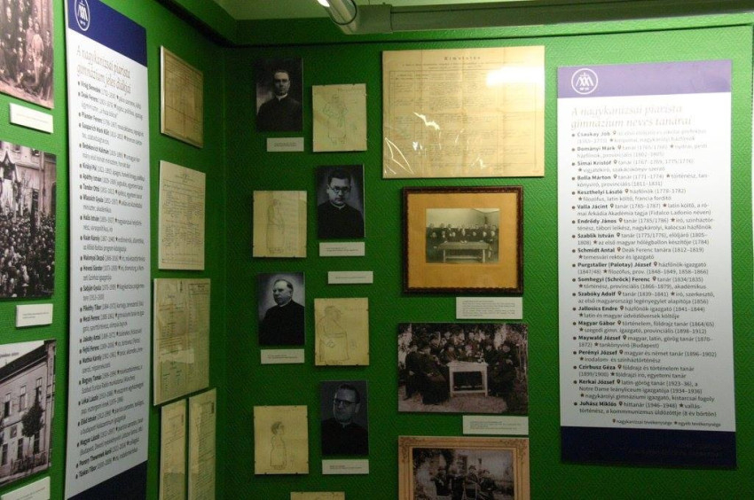 Az új kiállítás igazodik az intézmény szellemiségének kettős arculatához: az egyik fele ugyanis a tanárok életét, tudományos és lelkipásztori munkáját mutatja be, a másik pedig a diákok mindennapjait. Koltai András, a Piarista Rend Magyar Tartománya Központi Levéltárának vezetője, a kiállítás egyik megálmodója és rendezője érdekes és izgalmas történetekkel is szolgált tárlat-nyitó beszédében az 1765-ös alapítástól az 1948-as államosításig. Elmondta, hogy 1950-ben az ÁVO eltávolította a szerzeteseket az intézményből, s a tanítás 40 éven át szünetelt. Koltai András ellenpontként az aktív cserkészélet virágkoráról is beszélt, amikor a szerzetesek még együtt teniszeztek a diákokkal.