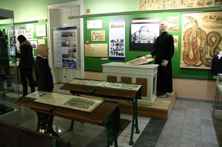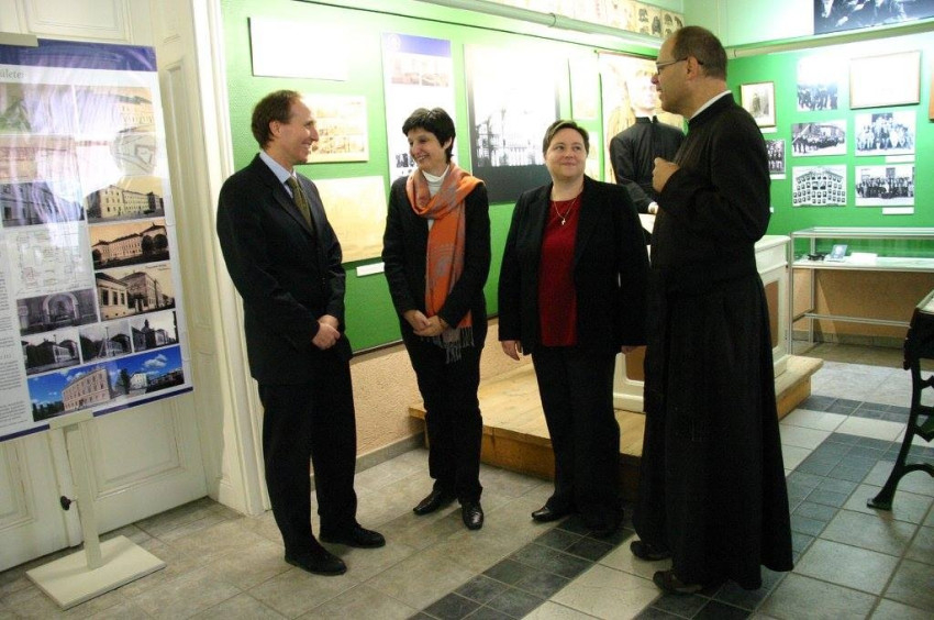 A tárlat megnyitóján Száraz Csilla múzeumigazgató és Nyeste Pál SP, a jubiláló iskola igazgatója köszöntötte a megjelenteket. „Ma már igazán sikeres az intézmény, egyre többen iratkoznak be iskolánkba. Korábban csak elemi iskola, később nyolc osztályos iskola, majd hat és nyolc osztályos gimnázium működött. Jelenleg általános iskola, gimnázium, kollégium, sőt óvoda alkotja az intézményegyüttest” – mondta el Nyeste Pál piarista tanár, az iskola igazgatója.