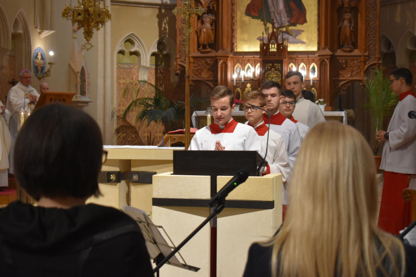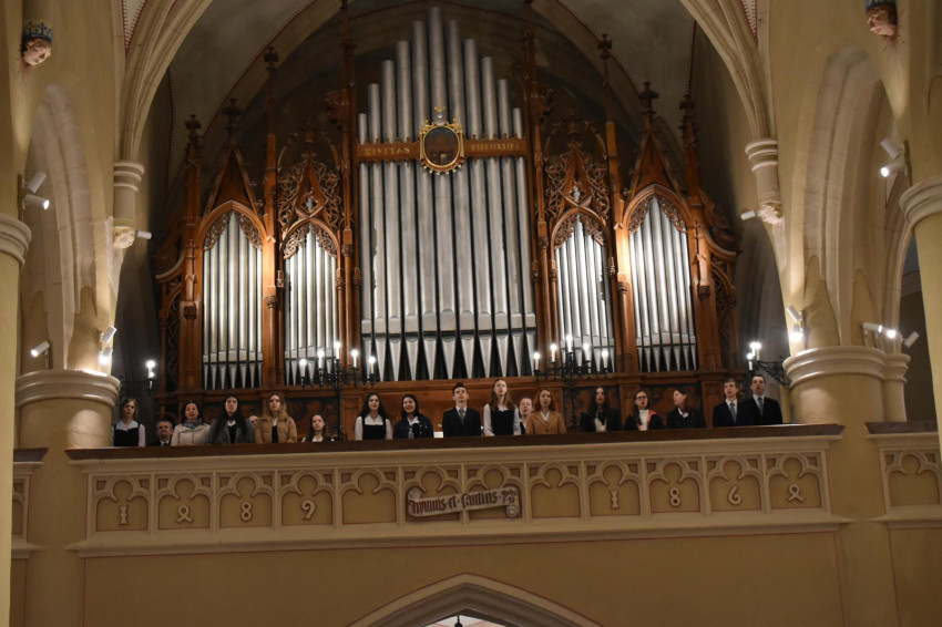 A Szent Mihály-templomban a 8–11. osztályosok, illetve az alsóbb évfolyamosok képviselői vettek részt a jubileumi év zárásaként püspöki szentmisén, amelyet Veres András megyéspüspök, az iskola fenntartója celebrált; koncelebrált Horváth Imre prépost, városplébános és Kovács Gergő Vilmos iskolalelkész. Az ünnepségen részt vett Farkas Ciprián polgármester, Barcza Attila Sopron és környéke országgyűlési képviselője és Orbán Adrienn, a szülői választmány elnöke is.