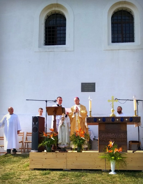 Hozzátette: Ezért vagyunk ma itt. Hallgatni akarunk Isten igéjére, és befogadni azt. Akarjuk, hogy élet fakadjon bennünk. Annak, hogy ez nem csak egy vágyakozás, ékes példája a Boldogságos Szűzanya, akinek anyai pártfogását kérjük a mai ünnepen. Úgy pillantunk rá, mint aki befogadta Isten igéjét, az Ige pedig hatalmas dolgot művelt általa. Ő a szeplőtelen, az égi édesanya, a példakép, a hit asszonya mindannyiunk számára. Anyai pártfogását kérjük, és emlékezünk arra, hogy Cserháti püspök úr ezen a helyen is meghonosította a fatimai Szűz hathatós közbenjáró imádságát. Arra kérte a lelkipásztorokat és a híveket, hogy jöjjenek ide hónapról hónapra, s bízzanak azon ígéretekben, amelyek a fatimai Szűz jelenéséhez kapcsolódnak – vagyis abban, hogy van lehetősége az embernek győzni a rossz felett.