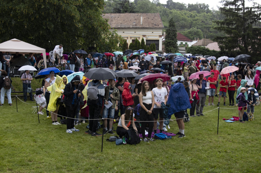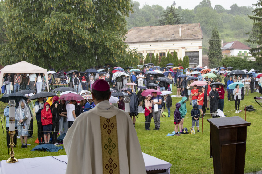A természet hangja ezúttal a mennydörgés, majd az eső lett, amely a mise kezdetére érkezett meg, később zuhogni kezdett, s az égbolt csak a szentbeszéd után kezdett tisztulni.