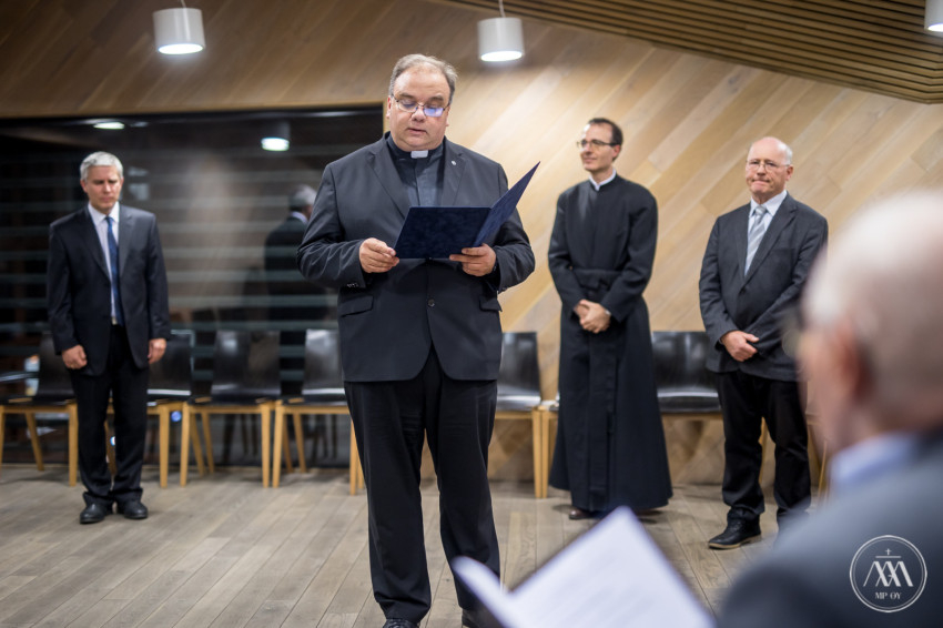 „Köszönjük Kurtág Györgynek, a Temesvári Piarista Gimnázium öregdiákjának, hogy az előbb említett intenzitással és lelkedéssel adja tovább a szépségre megnyíló lelkületet. Hisszük, hogy ez a szépség hozzájárul a világ megmentéséhez. Örömmel, szeretettel adjuk át ma, Szent Cecíliának, a zene védőszentjének ünnepén a Piarista Rend Magyar Tartománya által adományozott Kalazanci Szent József-emlékérmet Kurtág Györgynek sok évtizedes szenvedélyes zenepedagógusi munkásságának elismeréseként” – zárta ünnepi beszédét a tartományfőnök.