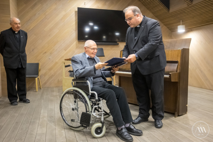 Kurtág György a temesvári piarista iskola öregdiákja és korunk legjelentősebb, világhírű zeneszerzőinek egyike – kezdte a kitüntetett méltatását Zsódi Viktor tartományfőnök. Ezt jelzi recepciója: az, hogy évtizedek óta világszerte játsszák alkotásait, jelzi a felsőfokon elismerő szakmai kritika, az interjúk, tanulmányok, könyvek sokasága, és azok a kitüntetések is, amelyekkel zeneszerzői életművét itthon és a világban megtisztelték, ahogyan a közelmúltban neki juttatott Wolf-díjjal történt. Szívből örülünk, hogy a világhírű művész életrajzában mindenütt ott van a Liszt Ferenc alapította Zeneakadémiát megelőző iskola, a hajdani Temesvári Piarista Gimnázium, ahol a bánáti Lugosról származó fiatalember középiskolai tanulmányait végezte.