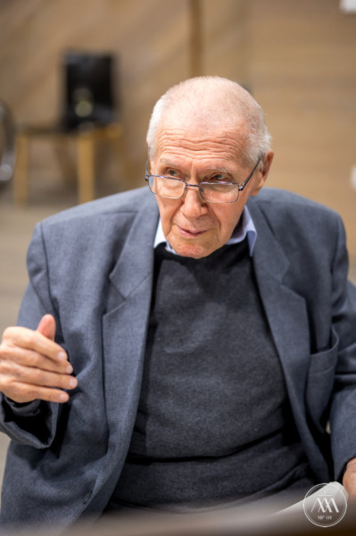 A díjátadó után a budapesti Piarista Gimnázium kórusának tagjai, végzős diákok kérdeztek Kurtág Györgytől. A beszélgetést Déri Balázs professzor vezette föl. Kurtág György temesvári diákéveiből leginkább a latintanárát emelte ki, említve, hogy jelenleg, kilencvennyolc évesen is tanul, egyetemi tanárral együtt latin költőt olvas.