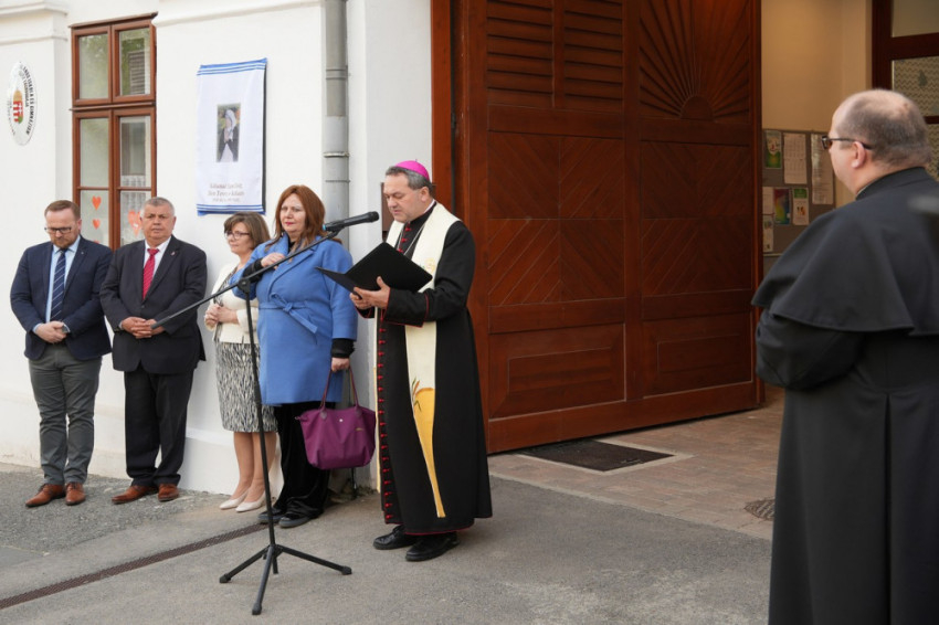 Felföldi László, az óvodát fenntartó Pécsi Egyházmegye püspöke beszédében kifejezte köszönetét és örömét, hogy az emléktábla a Kalkuttai Szent Teréz Óvodát gazdagíthatja.