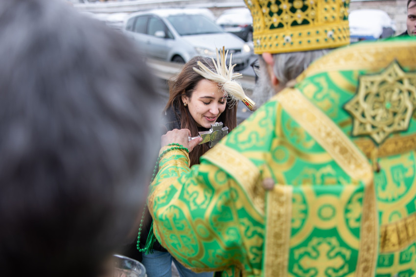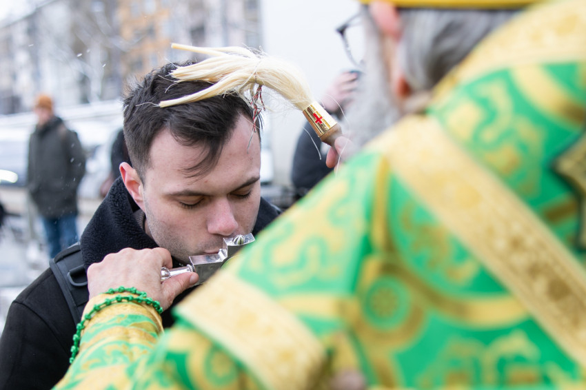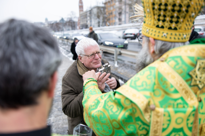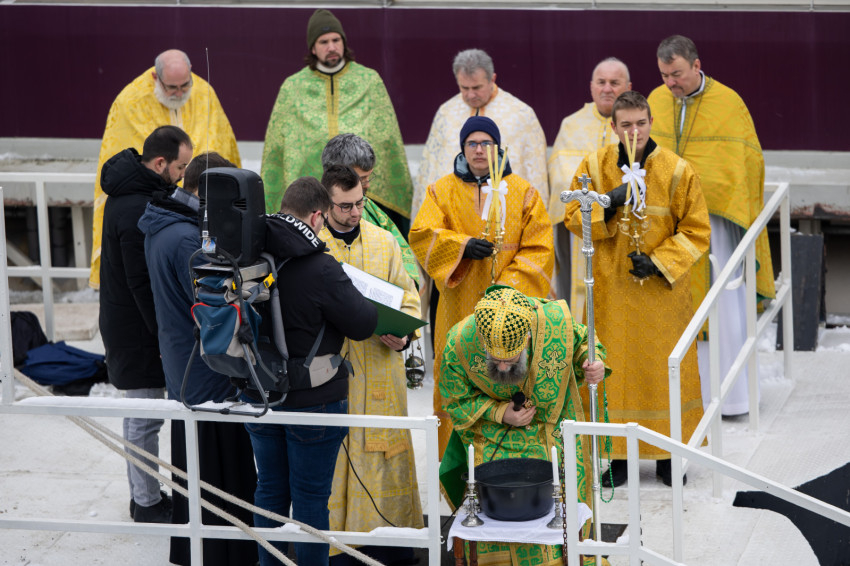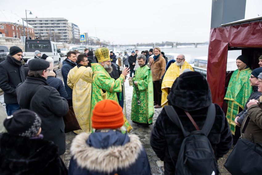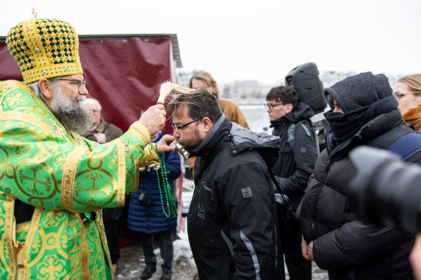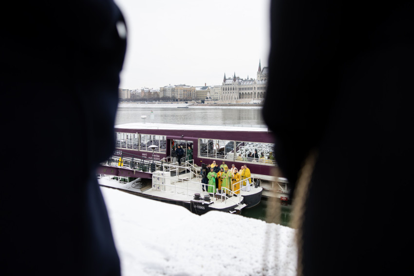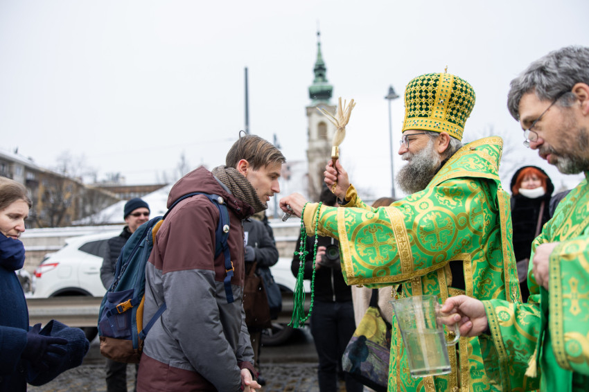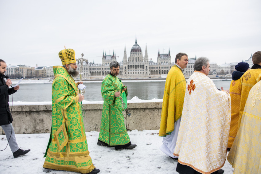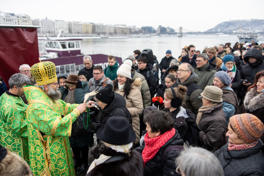 A Szent Liturgia után indult a menet énekkel vonulva a Dunához. Makláry Ákos, a Budai Görögkatolikus Egyházközség parókusa arra buzdított, tegyünk tanúságot arról, hogy velünk van Isten. A templom papsága és a hívek imádkozva haladtak végig a rakparton. „Szentelj meg engem és a vizeket, Üdvözítő” – hangzott fel újra és újra az emberek ajkán.