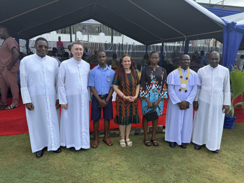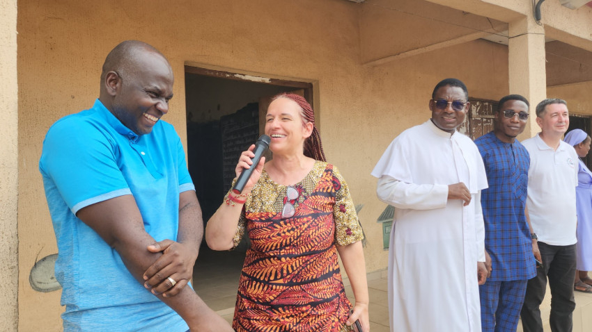 – Robi atya a zalaegerszegi Mindszenty-iskola lelkésze, évek óta segíti az alapítványt, van három „örökbe fogadott” diákja is. Meghívott engem előadni, aztán meghívta Basil atyát, Izunna atyát (Izunna Okonkwo, az onitshai Borromeo Szent Károly Kórház igazgatója – a szerk.) is, amikor Magyarországon voltak, és mára már 50-en támogatják az iskolájából a nigériai diákokat a testvériskolákban: osztályok, szülők, tanárok. Az ő tanítványa az a két lány is, akik olyan sokat segítenek önkéntesként. Ő maga egy szeminarista tanulmányait is szponzorálja, és ennek nyomán már hat paptársa is támogat szeminaristákat az itteni kisszemináriumban, így hét támogatottunk van. Szerette volna meglátogatni a gyereket, megnézni a missziót, itt van velem, interjúzik a betegekkel, nővérekkel, gyerekekkel, fotózik.