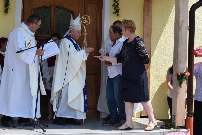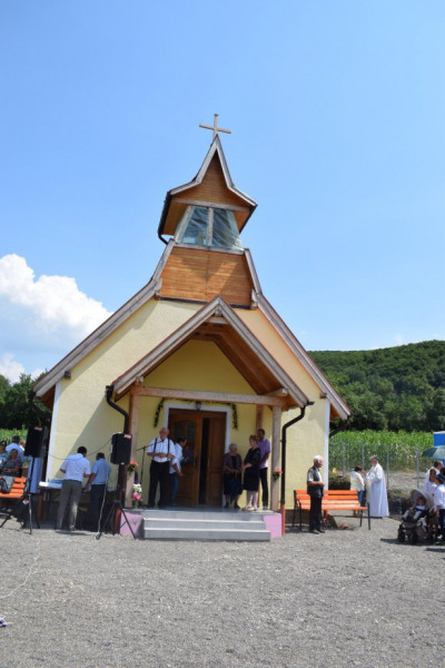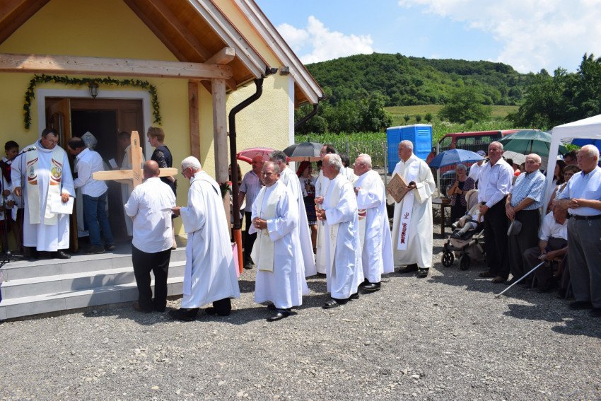 A plébánosnak sikerült úgy mozgósítania az ott élő s a faluból elszármazott híveket, valamint az erdélyi, magyarországi és németországi adományozókat, hogy július 18-án felszentelhették az újonnan felépült kápolnát.