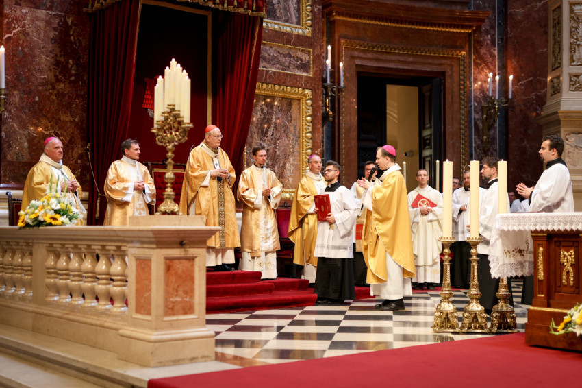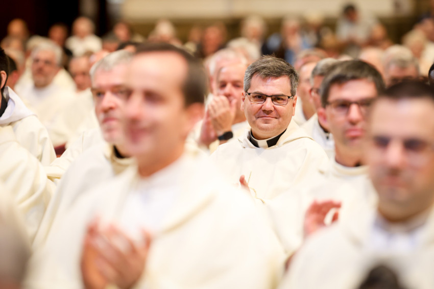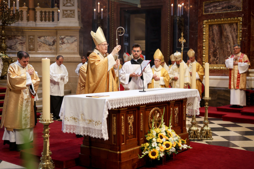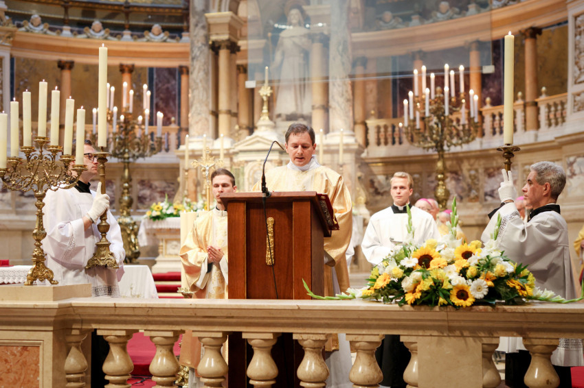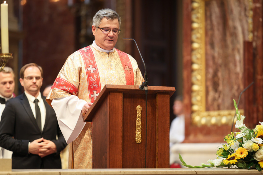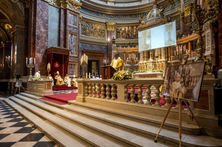 Süllei László protonotárius, kanonok, érseki általános helynök szentbeszédét teljes terjedelemben közöljük. A homíliát a kivetítőn Erdő Péter bíboros életéből vett képek kísérték.