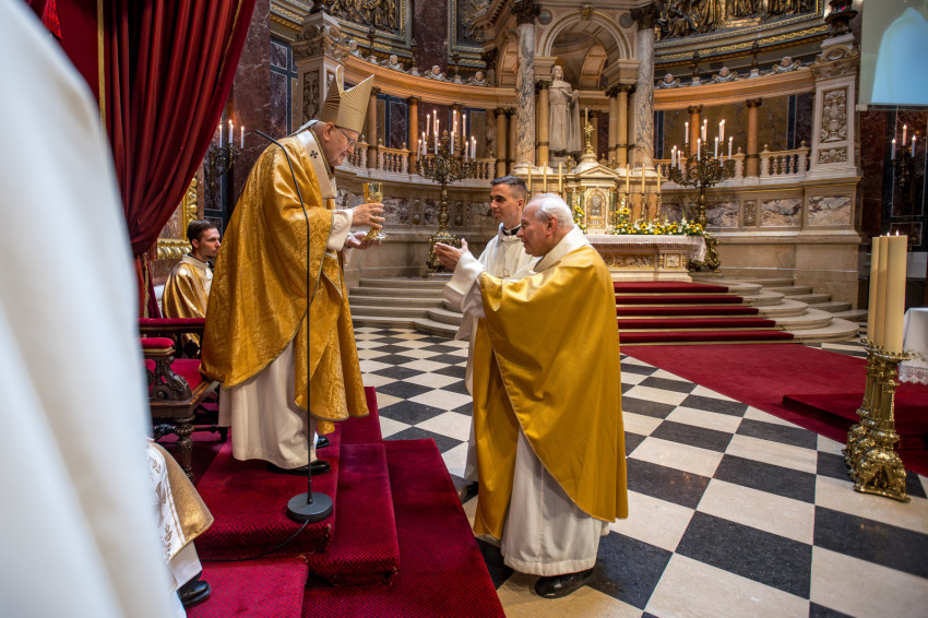 A szónok kérésére Lambert Zoltán, a főegyházmegye legidősebb papja és Schmotzer Kristóf, a főegyházmegye legfiatalabb papja aranymisés kelyhet adtak át Erdő Péter bíborosnak – emlékül az újmisés kehelyre, mely a kezdetet, a hivatás első igenjét őrzi.