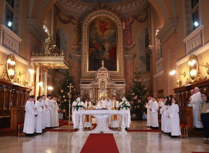 A szentmise végén Schönberger Jenő püspök négy nyelven kívánt boldog karácsonyt híveinek, megerősítve kérését, hogy a szívekben legyen ünnep, és a lángot, amit őriznek, adják tovább másoknak is, hogy karácsony ne csak egy, hanem az év minden napján legyen. A záró áldást követően a hívek együtt kezdték meg karácsonyi kántálásukat a templomban, a kivonulás előtt pedig még sokan odamentek a baloldali mellékoltárnál elhelyezett betlehemhez is, hogy a Szentcsalád mására tekintve hozzák magukhoz még közelebb a születés gondolatát, örömét.