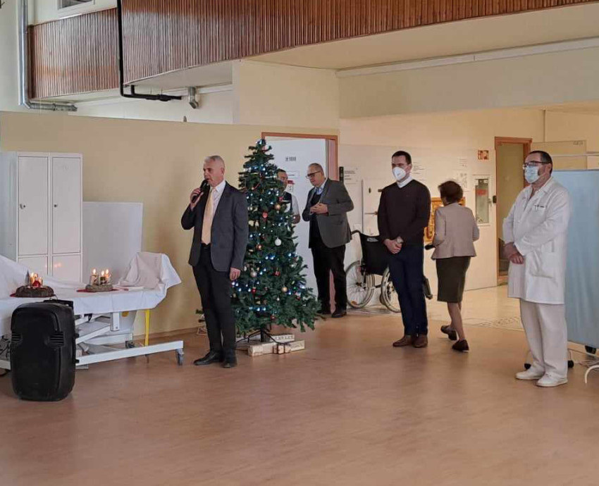 A megjelenteket Jenei Zoltán klinikaigazgató köszöntötte, majd Laczkó Zsolt görögkatolikus kórházlelkész tett tanúságot saját betegsége kapcsán. „A betegség nagy tanítómester, legalábbis akkor, hogyha nyitottak vagyunk, és tanulni akarunk. Az idővel nem lehet alkudni, mert az nem korlátlan. A betegségem alatt megfogadtam, hogy a jövőben csak értelmes dolgokkal szeretnék foglalkozni, ez belső békét ad, felszabadult örömet szerez nekem. Minden esemény azért van, hogy fölemeljen, közelebb vigyen minket az Istenhez. Arra szolgál most ez az alkalom is, hogy tudjunk megállni, elcsendesedni, elengedni az időt, felemelni a szívünket. Legyen hitünk a gyógyulásban, hitünk a gyógyításban – legyen áldott karácsonyunk!” – fogalmazott Laczkó Zsolt.