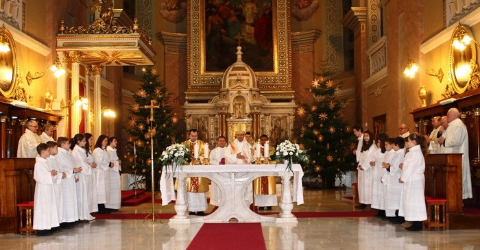 Böcskei László megyéspüspök a szentmise elején hangsúlyozta: karácsony titkát a hozzánk érkező gyermek állítja elénk, hogy feloldja félelmeinket, szorongásainkat, és a homályt beragyogó fénnyel megmutassa az Atya felé vezető utat. Ugyanis már a betlehemi jászolban azt üzente számunkra az Úrjézus: én vagyok az út, az igazság és az élet.