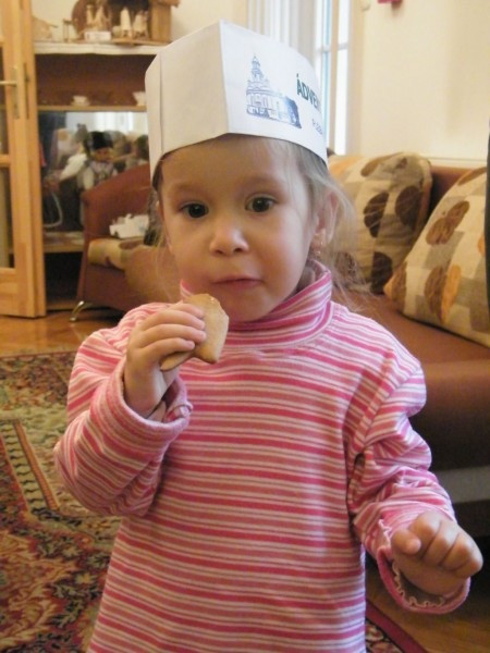 A játszóházat megelőzően a részt vevő asszonyok próbasütést végeztek. A sikert jelezte, hogy a „rorátés” ministránsok hamar elkapkodták a finomságot.