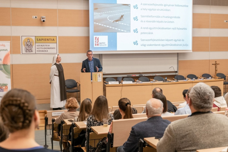 Koncz András egyházi fejlesztő és Bajnóczi Szilvia Sára CB a szerzetesközösségek fejlesztési tapasztalatairól beszéltek. Koncz András elmondta, hogy legtöbb esetben fontos cél, hogy a közösség visszataláljon a karizmájához, mint alapvető forráshoz és a közösség alapidentitásához, és azt a jelen helyzetére aktualizálja.