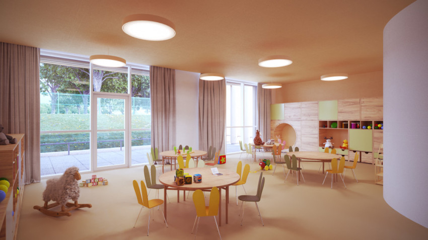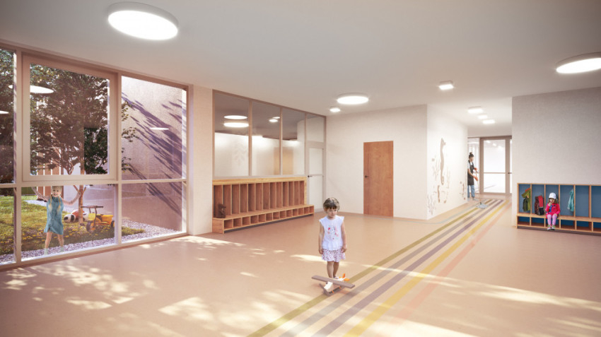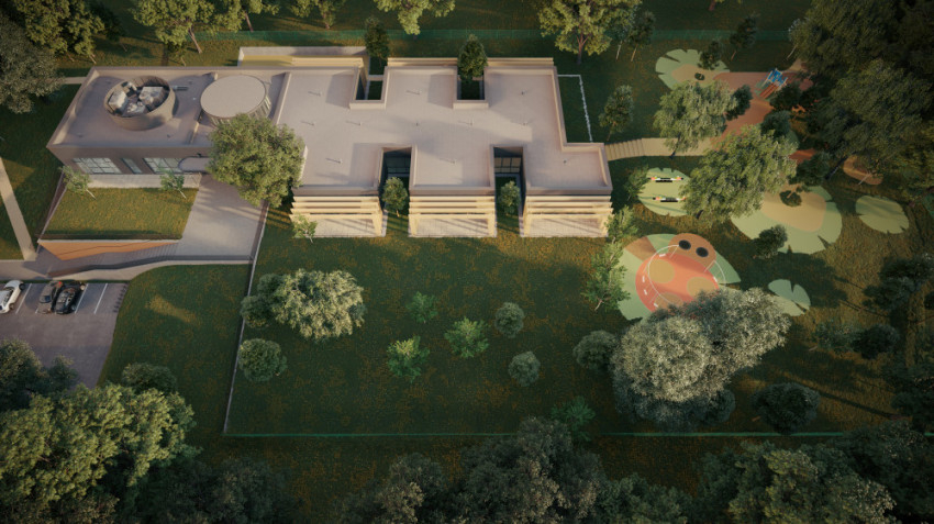 Az új óvodaépületről a Greg Építész Stúdió készített látványterveket.