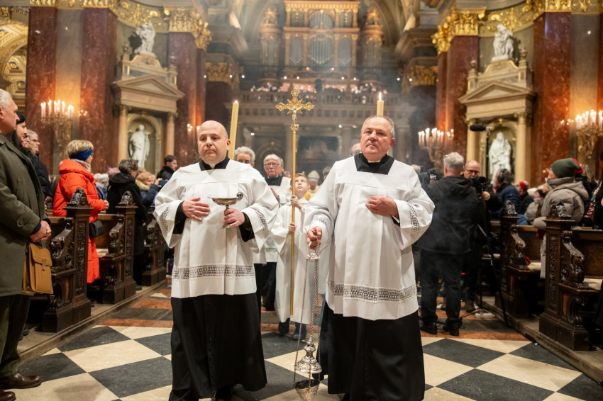 A kérdésére válaszolva, mert ez is a történethez tartozik: 1975-ben a gimnáziumi osztályommal feljöttünk Pestre, és megtekintettük a bazilikát is. Leültem az első padba, imádkoztam. Közben fölnéztem a főoltárra, és megcsodáltam a két méter magas, carrarai márványból készült Szent István-szobrot. Felsóhajtottam: Istenem, milyen jó lenne egyszer imádkozni itt! Később, 1989–1990-ben, a rendszerváltozás kezdetén rádióriporterként jártam a bazilikában. Akkoriban végezték a templombelső felújítását. Szabó Géza kanonok atyát kerestem. Leültünk a kilencvenhat méter magas kupolában, és beszélgettünk. Géza atya úgy vált el tőlem, hogy azt mondta: nagyon jó volt a beszélgetés, köszöni, szeretettel várnak a misén is. Ez húsvét előtt történt. A feltámadás ünnepén már ott voltam a szentélyben, de még csak civilként. Ezután rendszeresen részt vettem a hétköznap esti hat órás miséken. Egyszer aztán elkezdtem ministrálni Földi Endre atyának. Géza atya pedig közölte: most már az ünnepi asszisztenciában is várnának.